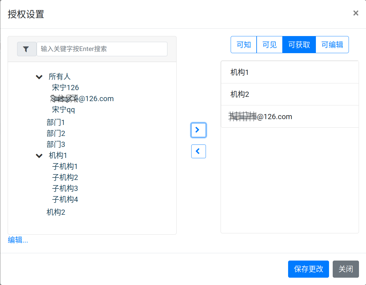 文件权限分为可知、可见、可获取、可编辑四个等级,可根据分享需求灵活设置。