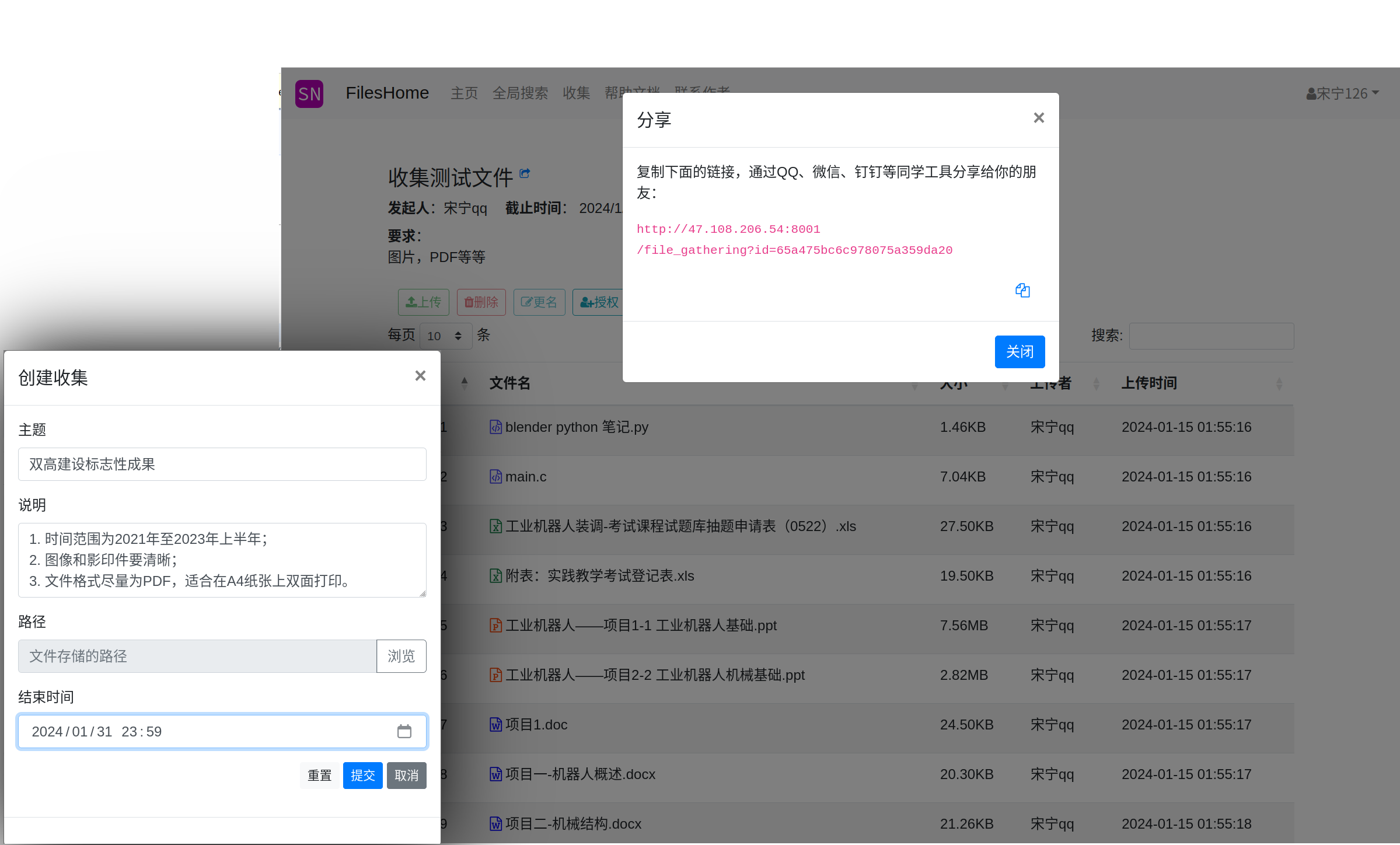 分享一个链接,告诉您的伙伴把项目需要的文件上传过来吧!